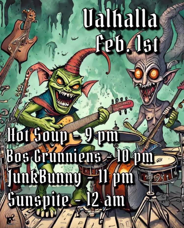 Thursday February 1 Sunspite, Junkbunny, Bos Grunniens, Hot Soup