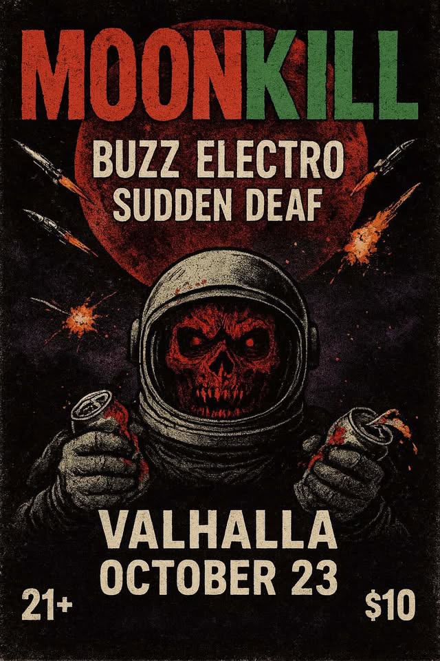 Thursday Oct 23 Moon Kill, Buzz Electro, Sudden Deaf