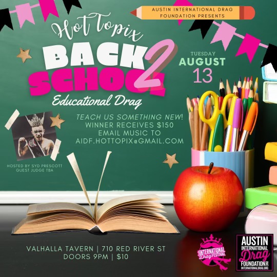 Back to TUESDAY AUG 13 Back 2 School Drag Competition
