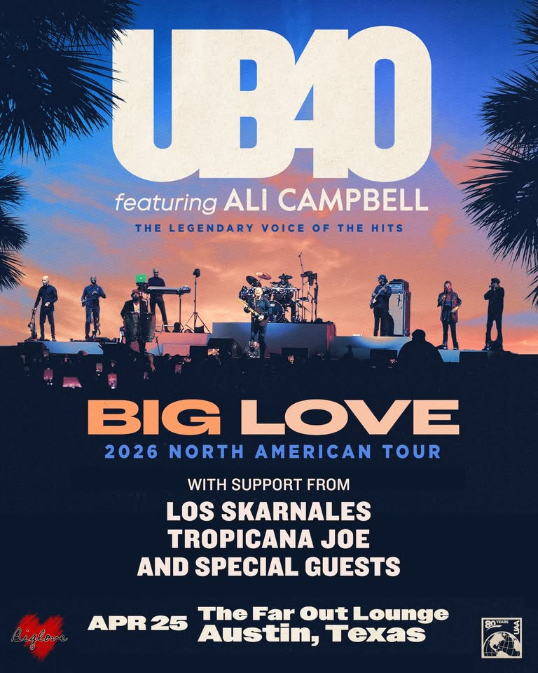 Fronted by the unmistakable voice of ALI CAMPBELL–known as the legendary original lead singer of UB40–UB40 FEATURING ALI CAMPBELL has announced the initial dates for their Big Love Tour in 2026. The shows kick off at the Grenada Reggae Fest–also known as “The Big Show,” a major cultural event featuring international and local artists–before the tour arrives in the U.S. with multiple stops in Florida and throughout the New York area (see the itinerary below). The 2026 dates follow an extensive 2024-2025 European tour of sold-out shows and major festival headlining slots. The tour is being booked by Universal Attractions Agency / Jeff Epstein in North America.