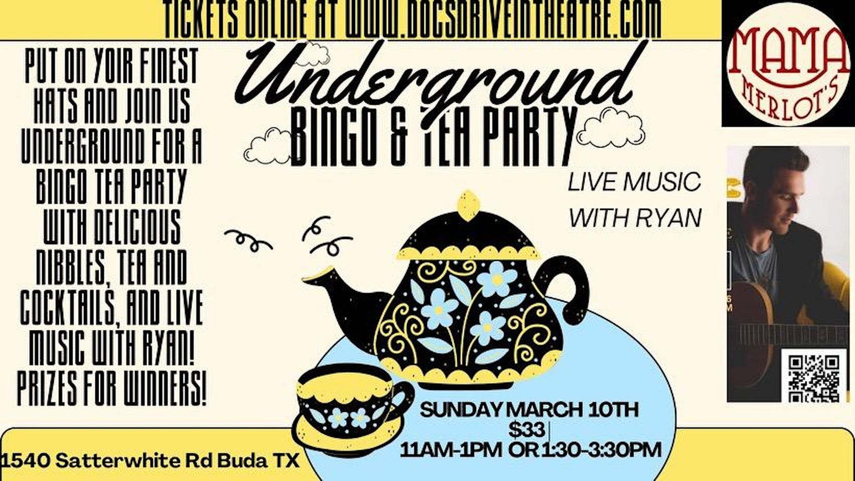 Whether you’re a tea enthusiast, a bingo lover, love live music or simply looking for a fun-filled afternoon, the Underground Tea Party & Bingo is the perfect event for you. Grab your friends and join us for an unforgettable experience at Mama Merlot’s Speakeasy.