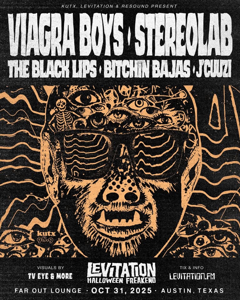 KUTX + Resound + LEVITATION Present Viagra Boys + Stereolab + The Black Lips + Bitchin Bajas + J’Cuuzi at The Far Out on 10/31 for Halloween FREAKend.