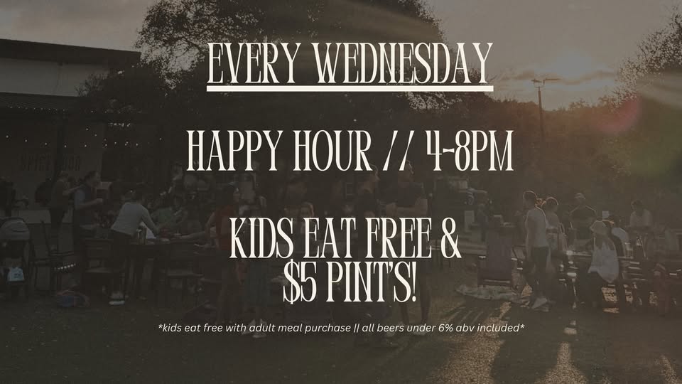 WEDNESDAY HAPPY HOUR: KIDS EAT FREE, $5 PINTS!