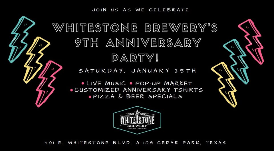 It’s our 9th birthday and we want to celebrate with YOU! We invite you to our Cedar Park taproom to party with us on Saturday, January 25th! Here’s what we have going on: