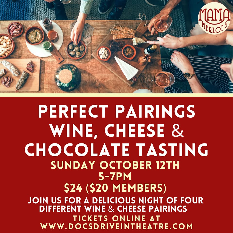 Welcome to Wine, Cheese and Chocolate Tasting at the Speakeasy ! Join us at Mama Merlot’s Speakeasy on October 12, 2025 at 5pm or 7pm for a delightful experience. Indulge in a variety of exquisite wines, artisanal cheeses, and decadent chocolates. It’s the perfect opportunity to unwind and savor the finer things in life. Don’t miss out on this fantastic event! See you there!