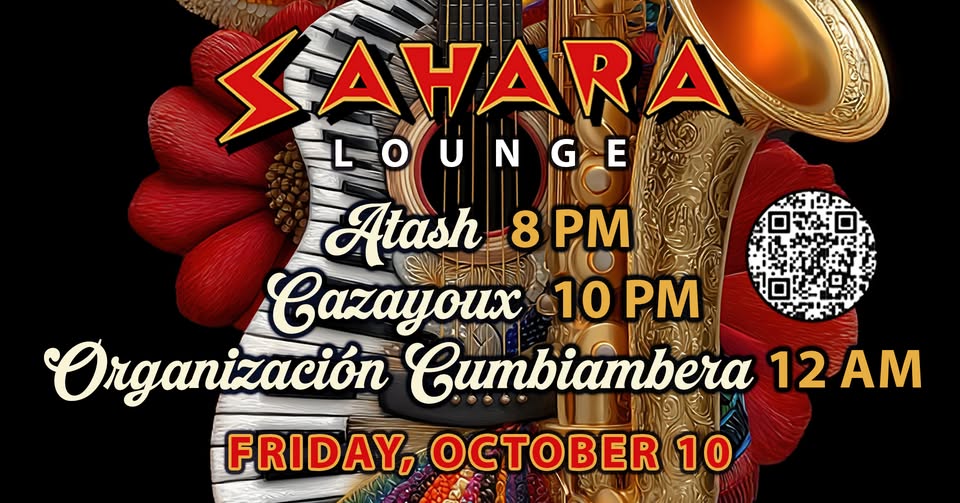 Wow – what a great night of diverse worldbeat, right here in Austin, Texas! 7p Doors, 8p Atash, 10p Cazayoux, 12a Organización Cumbiambera… Dance the night away… socialize and rejuvinate!